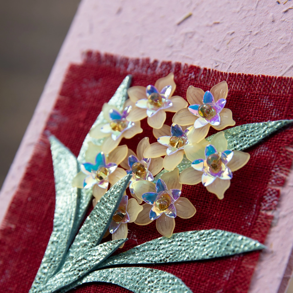 Ilahduta läheistä kauniilla kelta-sinisellä helmikukkakortilla.